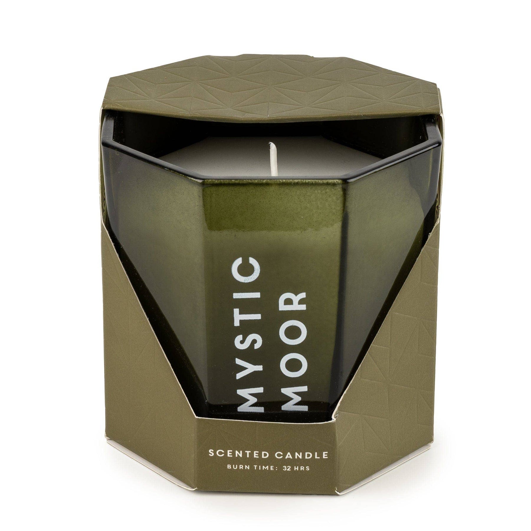 Regular price £7.80Elevate your home's ambience with the Large Mystic Moor Octagonal Candle, a statement piece that combines elegant aesthetics with a soothing presence. Encased in a striking forest green octagonal glass vessel, this candle not only casts a warm, inviting glow but also serves as a decorative accent.